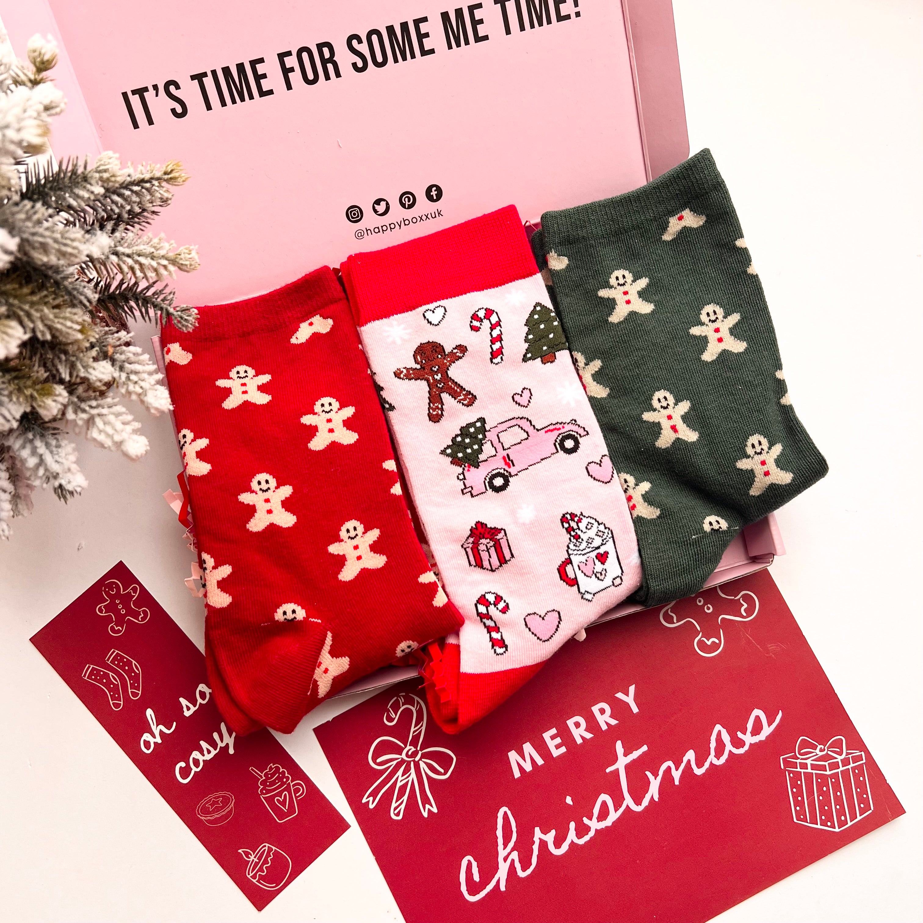 Step into the season of sparkle with our Limited Edition Christmas Socks Box, the perfect blend of comfort and Christmas magic! Each box is packed with ultra-soft, high-quality festive socks designed to keep your toes warm and your holiday spirit high.