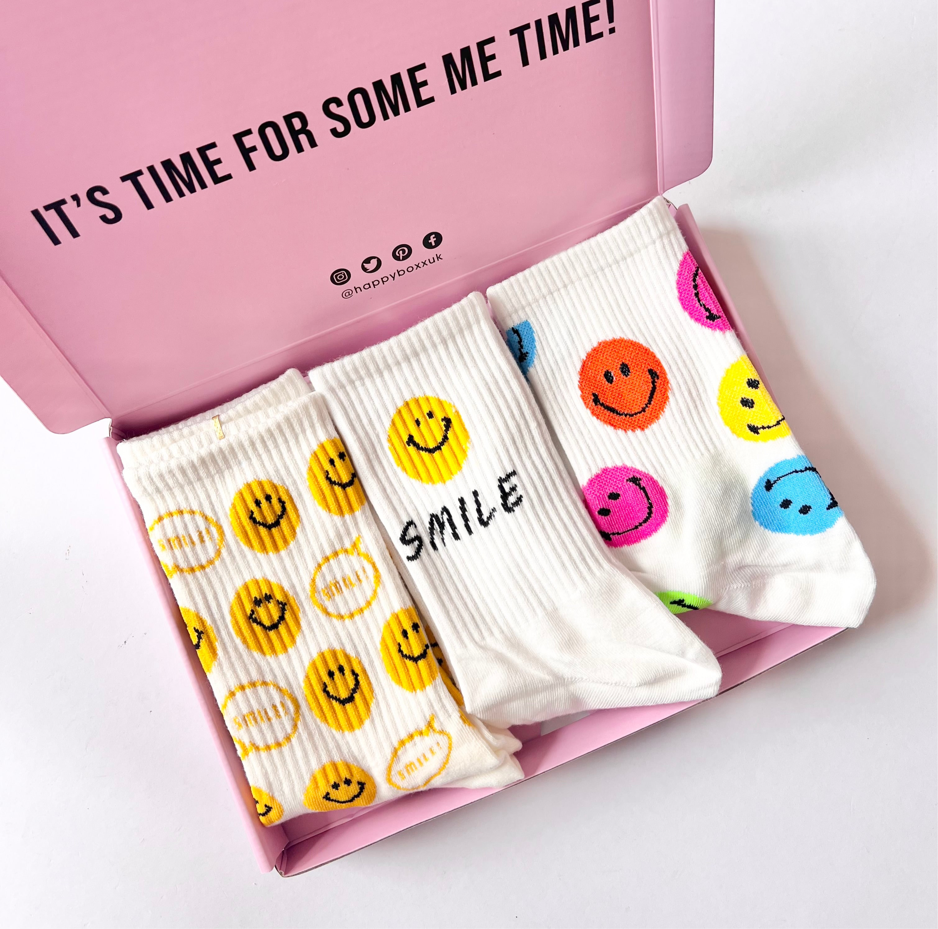 Step into sunshine with our Summer Socks Box – a cheerful letterbox gift packed with three pairs of bright and happy smiley socks. Perfect for adding a pop of colour to your wardrobe or surprising someone special with a fun, feel-good treat. One size fits all, making it a thoughtful and versatile gift for any occasion.